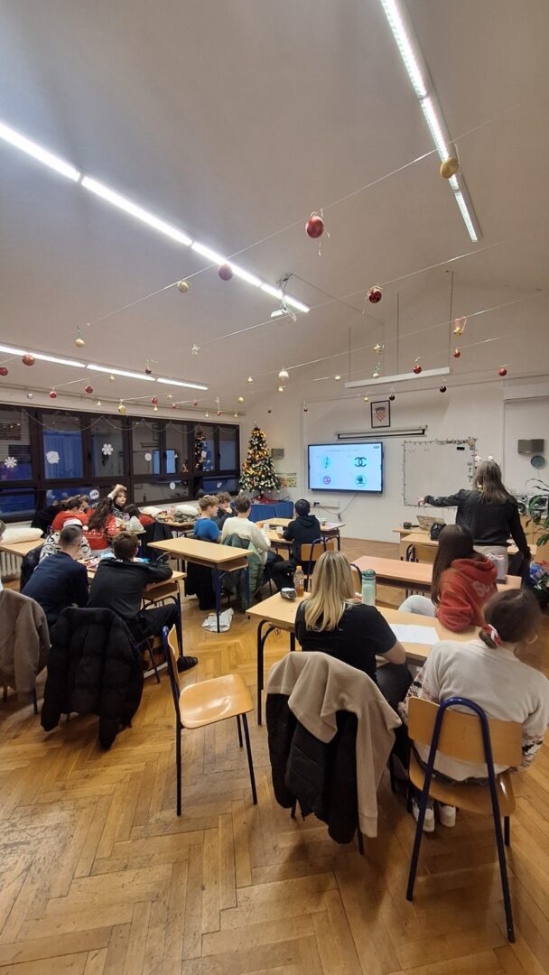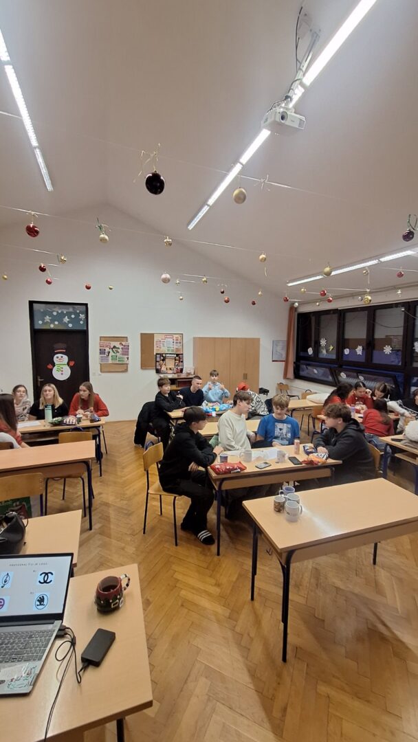U petak, 19. prosinca, u poslijepodnevnim satima u našoj je školi održano božićno druženje učenika osmih razreda. Ugodnu i veselu atmosferu osmislile su i organizirale razrednice 8. razreda, Andrea i Ana, s ciljem zajedničkog druženja i obilježavanja nadolazećih božićnih blagdana.