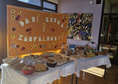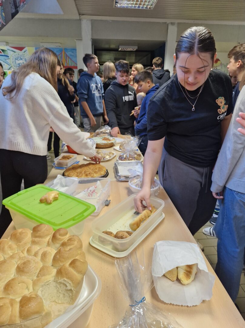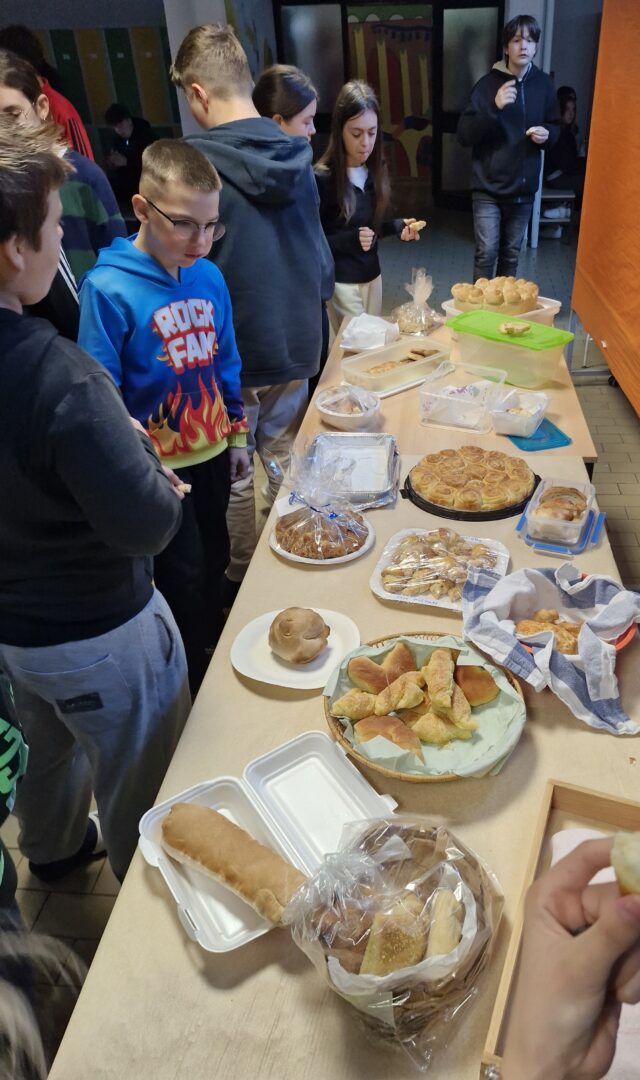 Uslijedila je degustacija kruha i slanih peciva koje su za sve nas pripremili učenici 4., 5. i 6. razreda, dok su učenici 7. i 8.razreda sve nas počastili kolačima tako finima da se tražio komad više.
