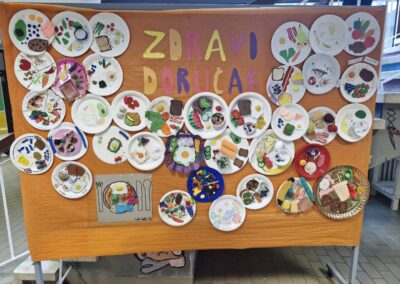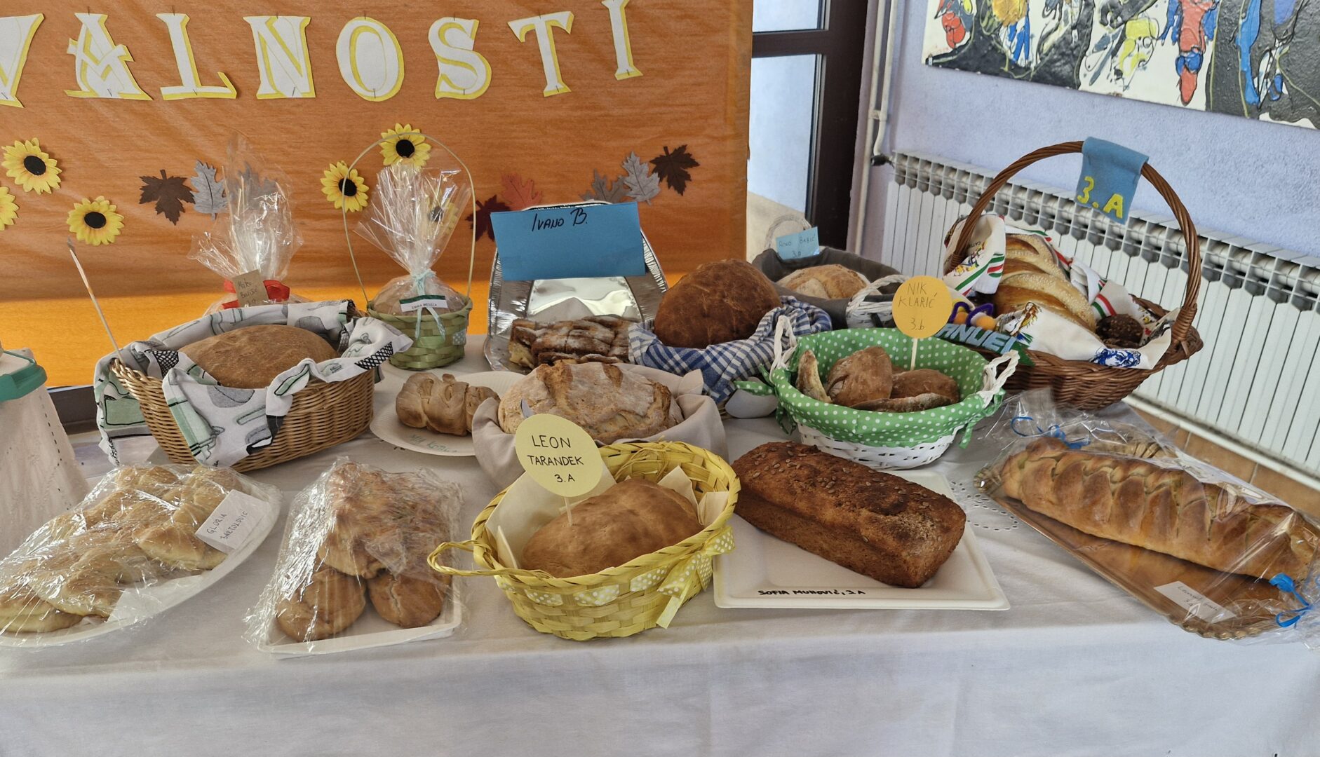 Prvašići su oblikovali najfinije kruščiće iz mašte, drugašići su posjetili pekaru i otkrili kako nastaju kruh, peciva, kolači… Učenici trećih razreda uz pomoć svojih majki, nona, teta, susjeda,… ispekli su kruh koji smo izložili na ulazu u školu. Svi smo se divili vještim rukama i uživali u mirisu.