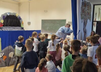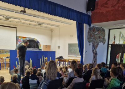 U četvrtak 9. listopada u goste nam je stigla Produkcija Z iz Splita s predstavom Dobro se dobrim vraća za učenike prvih i drugih razreda. Lutkarski mjuzikl o dobrim djelima koje trebamo činiti  odvija se u Jadranskom moru među ribicama. Kada se hobotnica, stari neprijatelj malih ribica, nađe u životnoj opasnosti, ribice joj svejedno priskaču u pomoć. Pouka mjuzikla je da tolerancija i međusobno poštovanje pobjeđuje sve predrasude, a svako se dobro djelo dobrim djelom vraća. Za kraj tjedna, u petak 10. listopada učenike petih i sedmih razreda zabavljao je mladi glumac Hit Teatra iz Zagreba, Matko Elezović sa svojom predstavom Profesore dajte 2. Predstava na šaljiv način vodi publiku kroz vesela školska događanja koja su svima poznata.