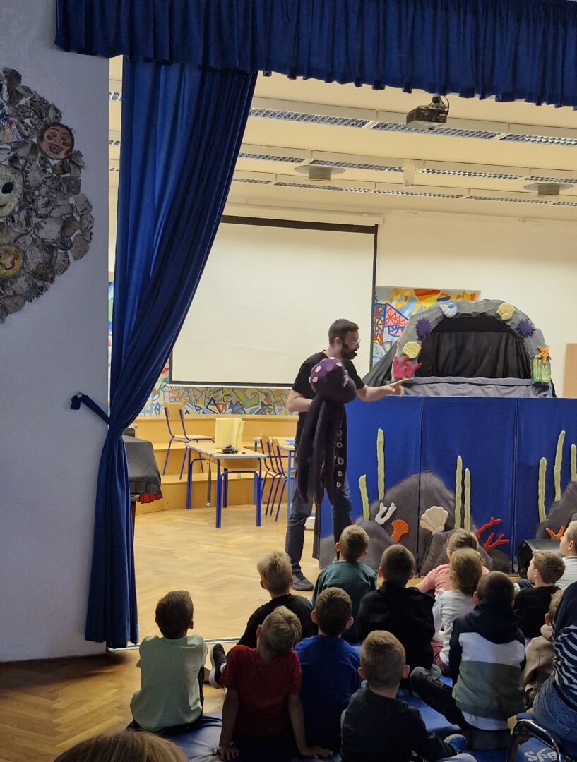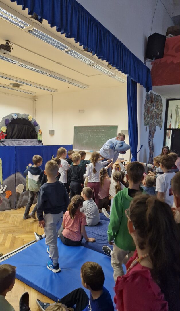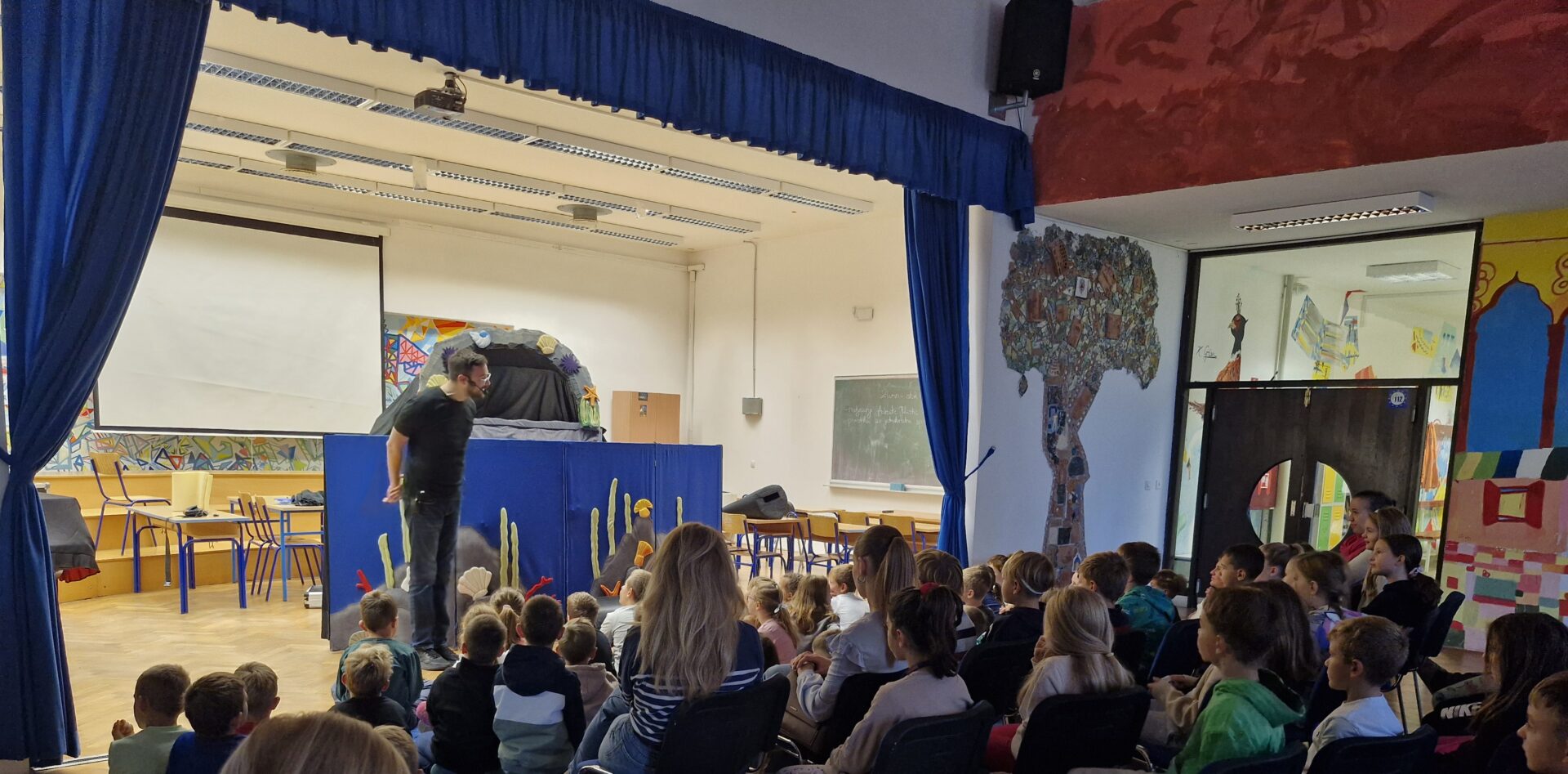 U četvrtak 9. listopada u goste nam je stigla Produkcija Z iz Splita s predstavom Dobro se dobrim vraća za učenike prvih i drugih razreda. Lutkarski mjuzikl o dobrim djelima koje trebamo činiti  odvija se u Jadranskom moru među ribicama. Kada se hobotnica, stari neprijatelj malih ribica, nađe u životnoj opasnosti, ribice joj svejedno priskaču u pomoć. Pouka mjuzikla je da tolerancija i međusobno poštovanje pobjeđuje sve predrasude, a svako se dobro djelo dobrim djelom vraća. Za kraj tjedna, u petak 10. listopada učenike petih i sedmih razreda zabavljao je mladi glumac Hit Teatra iz Zagreba, Matko Elezović sa svojom predstavom Profesore dajte 2. Predstava na šaljiv način vodi publiku kroz vesela školska događanja koja su svima poznata.