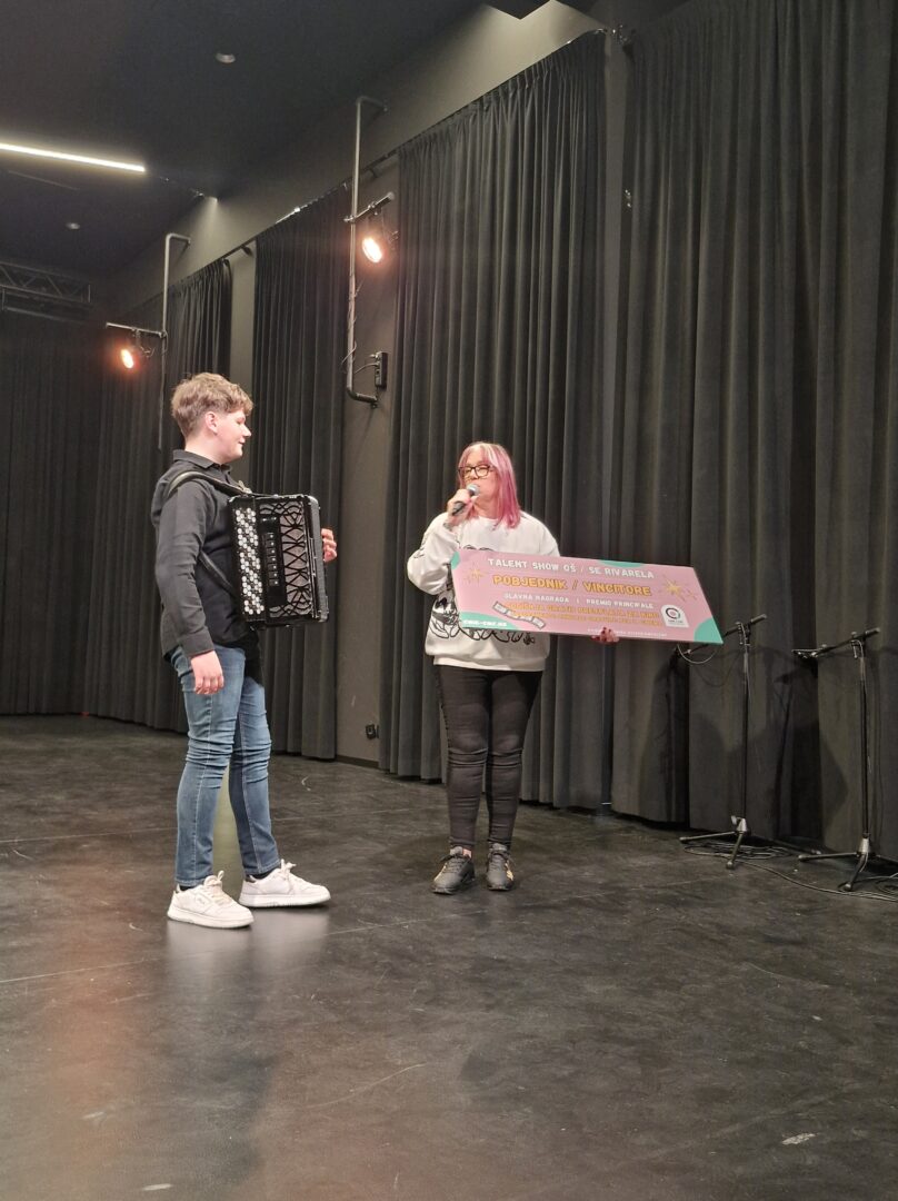 Treće mjesto zaslužio je glazbeni duo – učenici 6. B razreda Noa Ergović i Noa Posavec sa svojom glazbenom obradom pjesme “Bella Ciao”, drugo mjesto osvojila je učenica 7. A razreda Lena Deletić sa svojim latinoameričkim plesom “Ritmo del fuego” , a prvo je mjesto uz jednoglasnu odluku žirija osvojio učenik 6. B razreda Josip Hlevnjak koji je na harmonici izveo pjesmu “Viva la vida” grupe Coldplay. Publika je gromoglasnim pljeskom pozdravila pobjednike, a za kraj smo još jednom pogledali Josipov nastup.