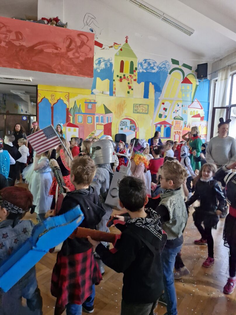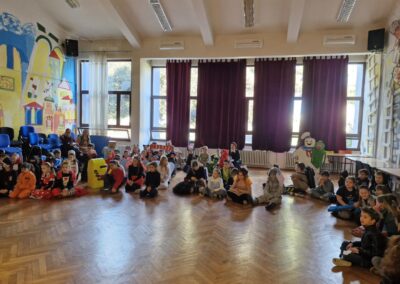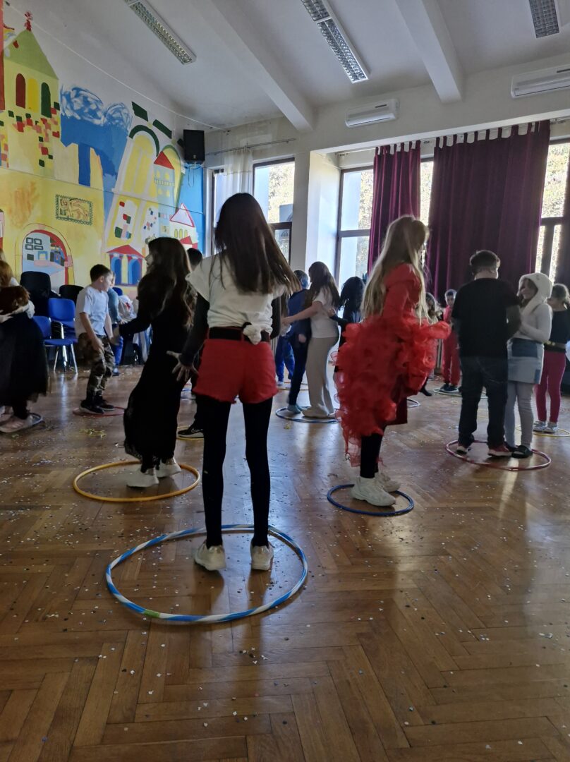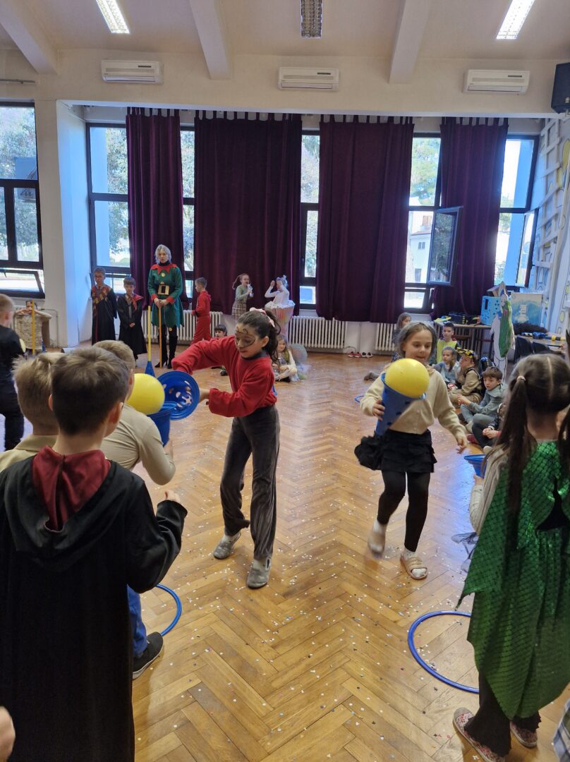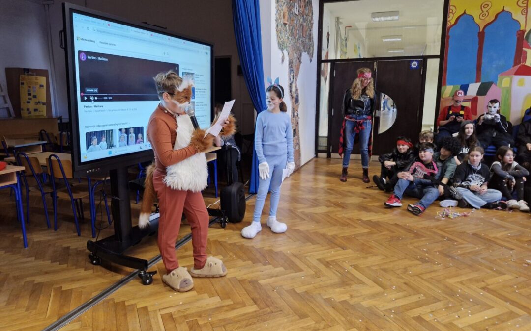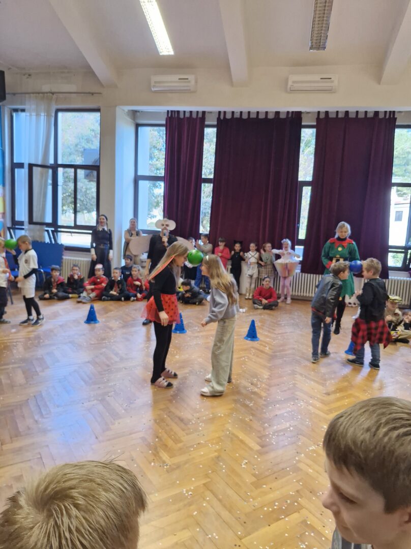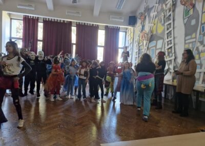 Veselo i zabavno bilo je na maškarama u utorak, 17. veljače 2026. Učenici nižih razreda pokazali su svoje maštovite kostime i uživali u pjesmi, plesu i igrama. Prvi su svoje kostime predstavili prvi i drugi razredi, a zatim treći i četvrti. Nakon pjesme i plesa, treći i četvrti razredi su se natjecali u štafetnim igrama, pokazujući spretnost, brzinu i timski duh za što su dobili i zajedničku nagradu. Žiri kojeg su činili knjižničarka i nekoliko učenika iz osmih razreda imali su težak zadatak odabrati pojedinačnu najoriginalniju masku.