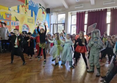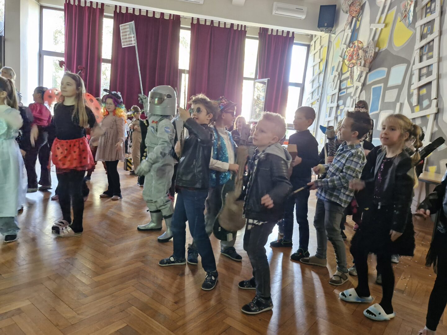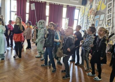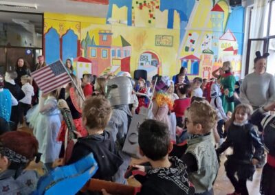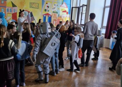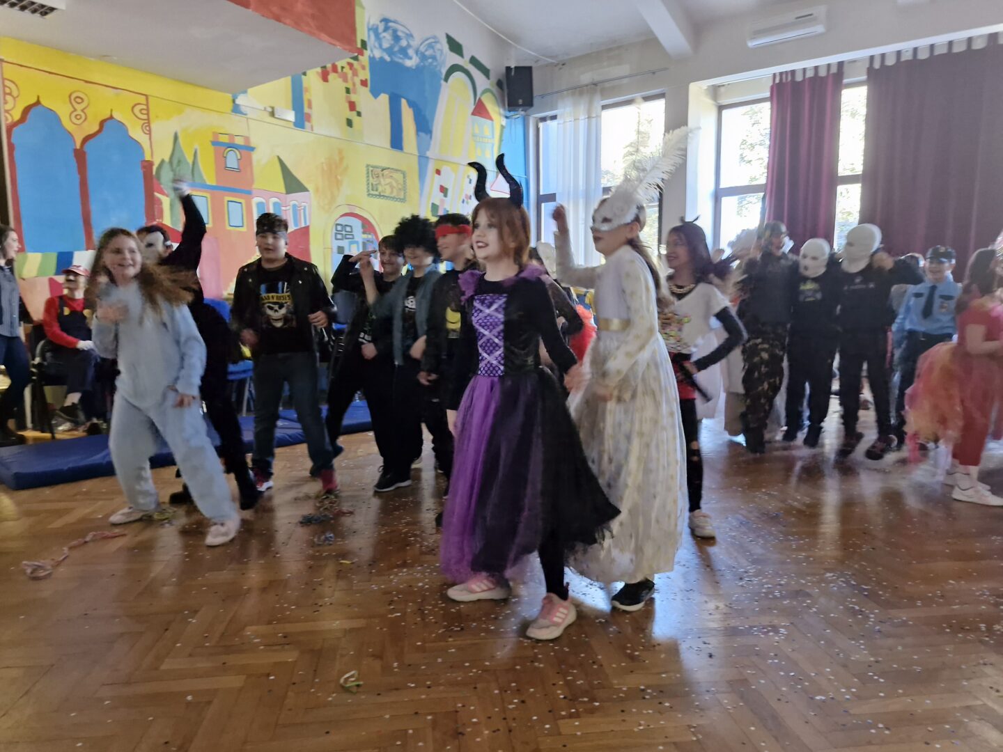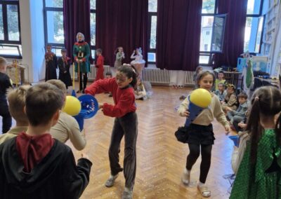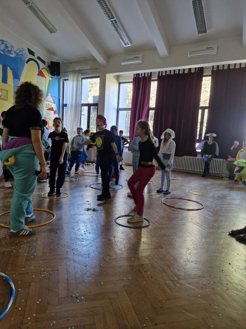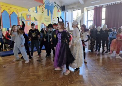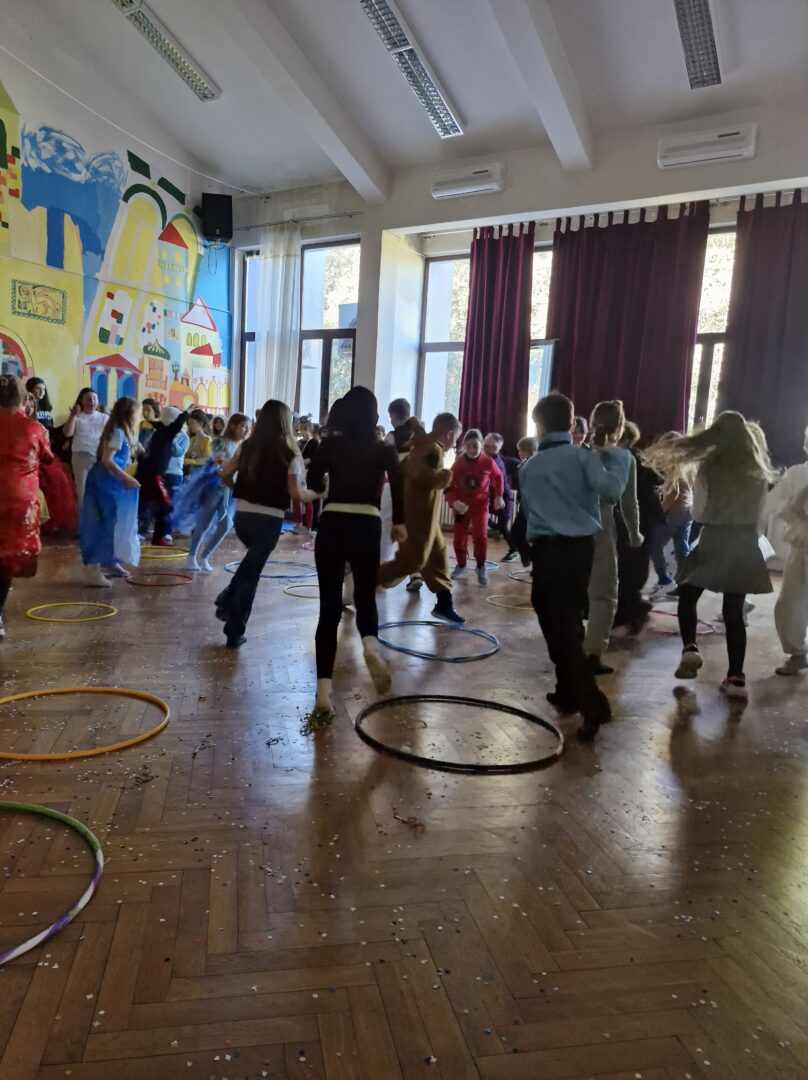 Veselo i zabavno bilo je na maškarama u utorak, 17. veljače 2026. Učenici nižih razreda pokazali su svoje maštovite kostime i uživali u pjesmi, plesu i igrama. Prvi su svoje kostime predstavili prvi i drugi razredi, a zatim treći i četvrti. Nakon pjesme i plesa, treći i četvrti razredi su se natjecali u štafetnim igrama, pokazujući spretnost, brzinu i timski duh za što su dobili i zajedničku nagradu. Žiri kojeg su činili knjižničarka i nekoliko učenika iz osmih razreda imali su težak zadatak odabrati pojedinačnu najoriginalniju masku.