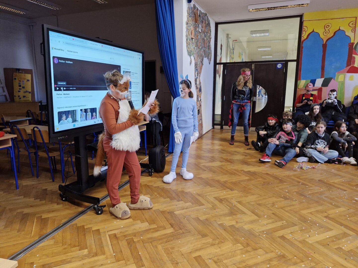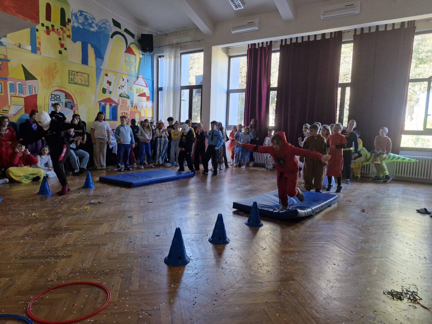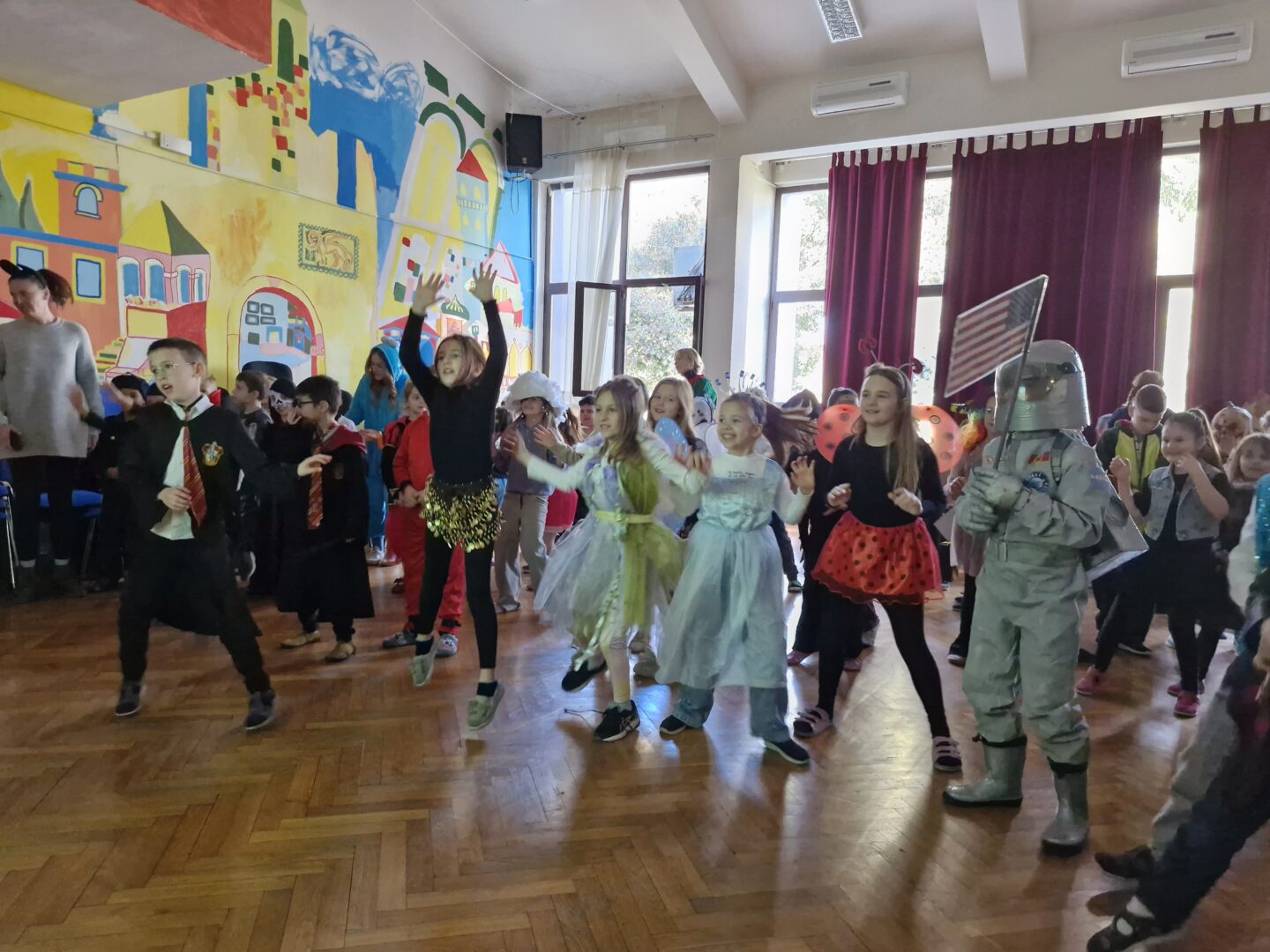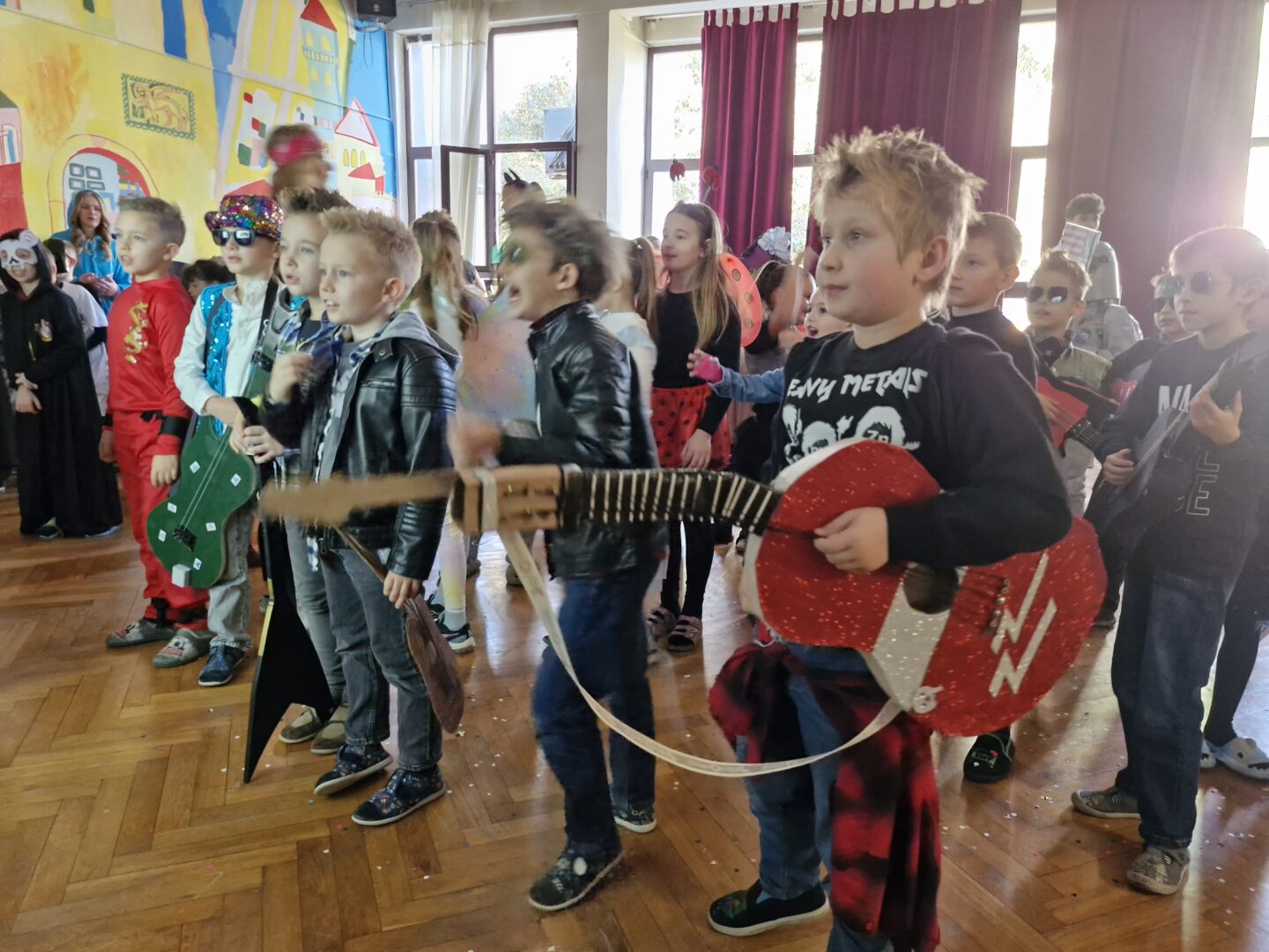 Veselo i zabavno bilo je na maškarama u utorak, 17. veljače 2026. Učenici nižih razreda pokazali su svoje maštovite kostime i uživali u pjesmi, plesu i igrama. Prvi su svoje kostime predstavili prvi i drugi razredi, a zatim treći i četvrti. Nakon pjesme i plesa, treći i četvrti razredi su se natjecali u štafetnim igrama, pokazujući spretnost, brzinu i timski duh za što su dobili i zajedničku nagradu. Žiri kojeg su činili knjižničarka i nekoliko učenika iz osmih razreda imali su težak zadatak odabrati pojedinačnu najoriginalniju masku.