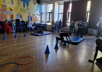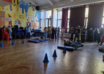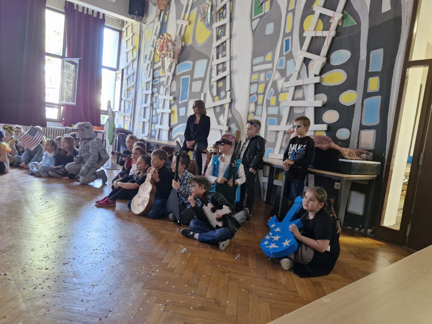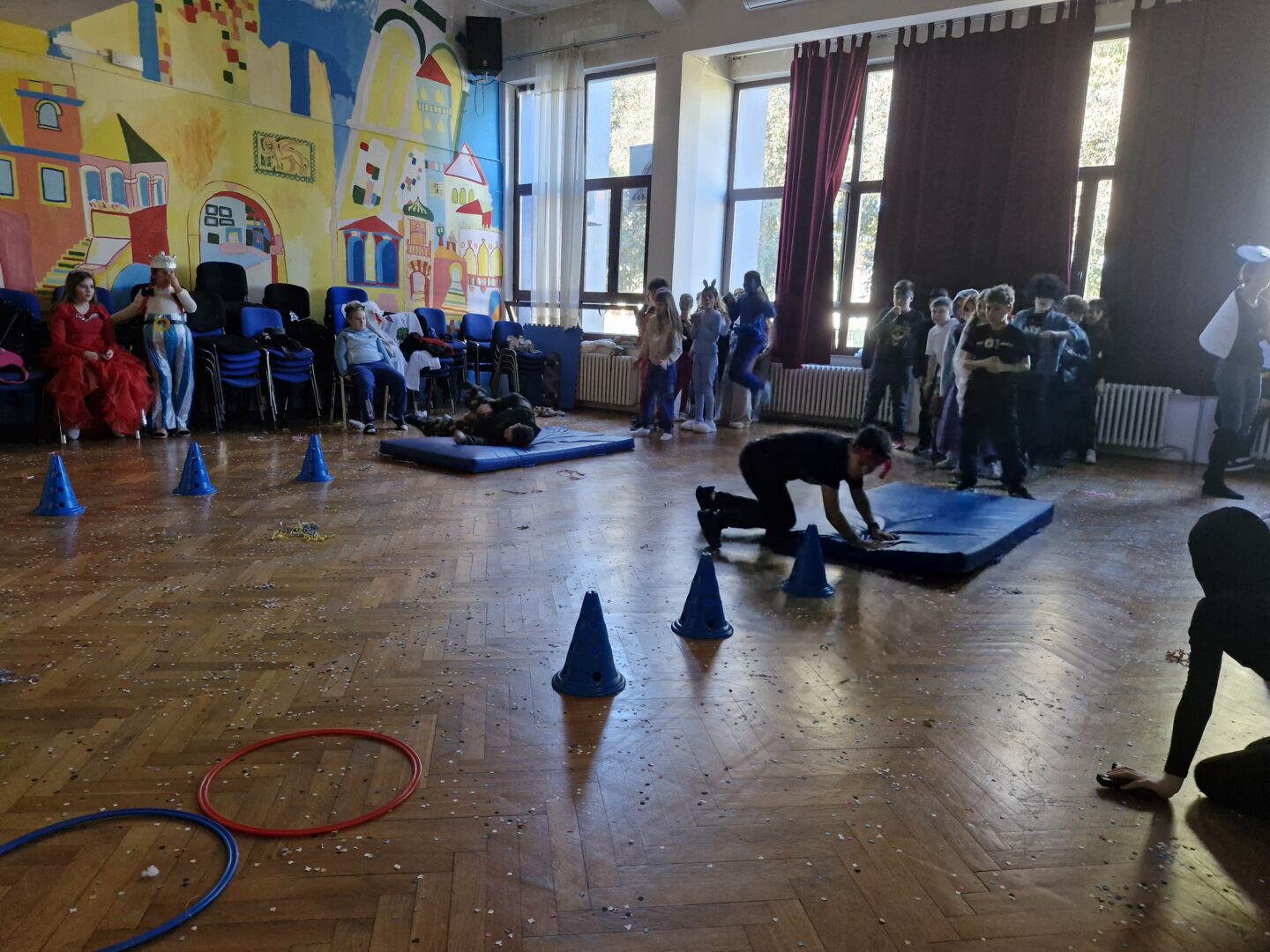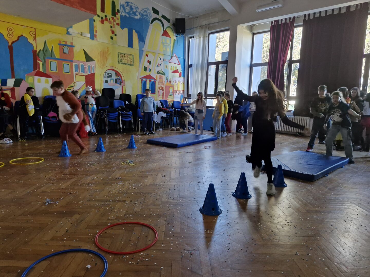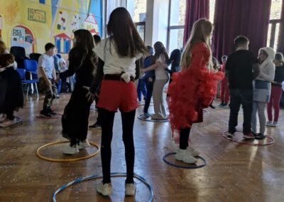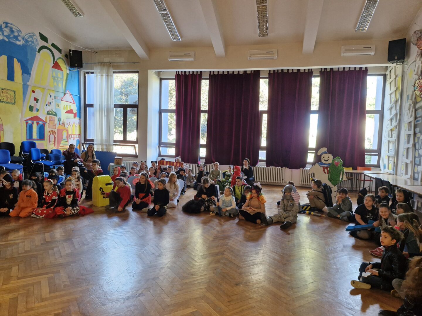 Veselo i zabavno bilo je na maškarama u utorak, 17. veljače 2026. Učenici nižih razreda pokazali su svoje maštovite kostime i uživali u pjesmi, plesu i igrama. Prvi su svoje kostime predstavili prvi i drugi razredi, a zatim treći i četvrti. Nakon pjesme i plesa, treći i četvrti razredi su se natjecali u štafetnim igrama, pokazujući spretnost, brzinu i timski duh za što su dobili i zajedničku nagradu. Žiri kojeg su činili knjižničarka i nekoliko učenika iz osmih razreda imali su težak zadatak odabrati pojedinačnu najoriginalniju masku.