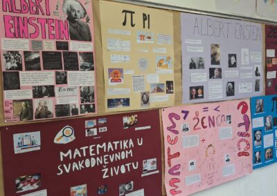 Učenici osmih razreda izrađivali su edukativne plakate na različite teme. Istraživali su život i rad Alberta Einsteina, upoznali zanimljivosti o broju Pi, proučavali primjenu matematike u svakodnevnom životu te istaknuli važnost i doprinos žena u matematici. Njihovi radovi pokazali su koliko matematika može biti široka, inspirativna i povezana s drugim područjima.