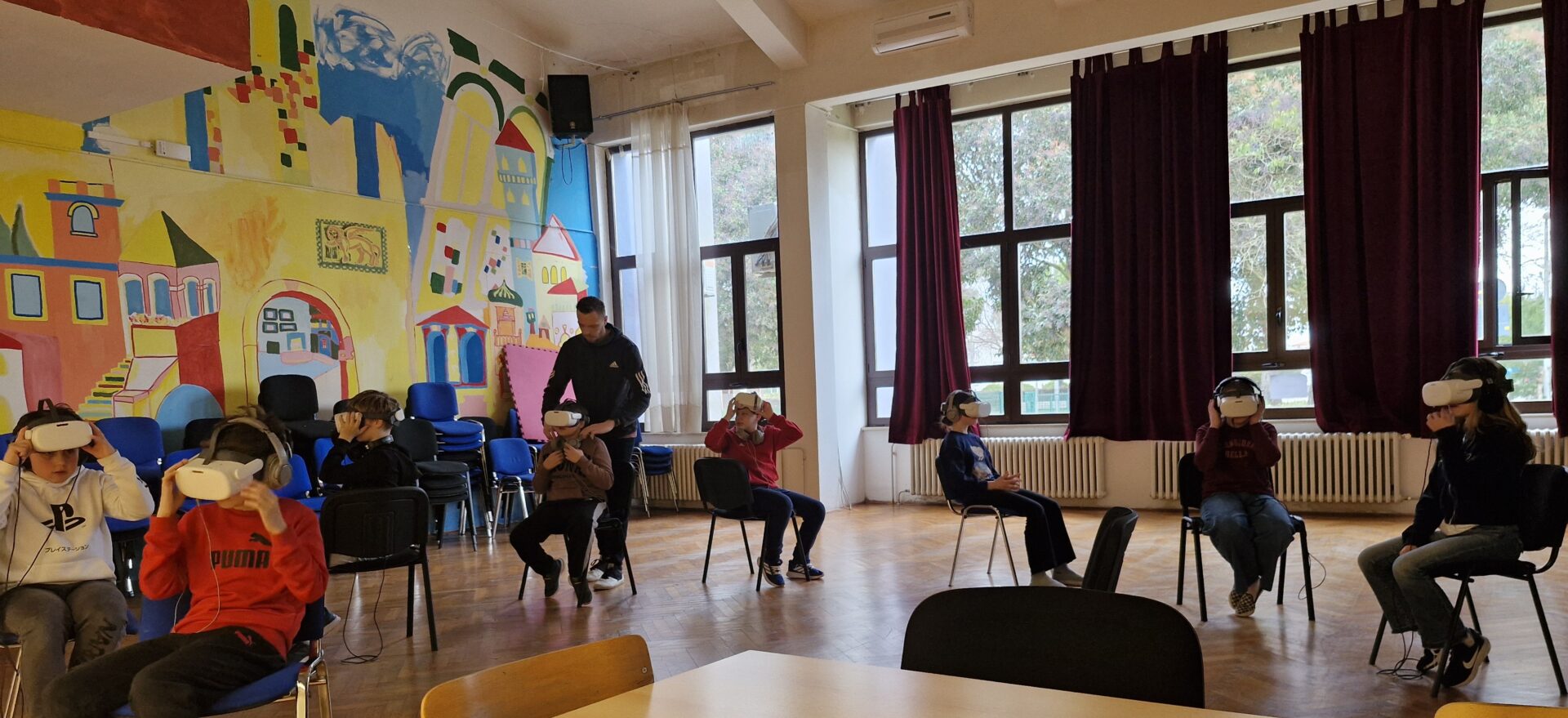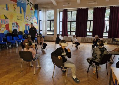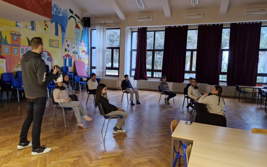 U utorak, 24. veljače, u goste nam je stiglo putujuće VR kino u Hrvatskoj kojeg je kreirao Davor Rostuhar, naš poznati putopisac. VR je nova tehnologija koja otvara potencijale učenja i nudi nezaboravna iskustva, te se sve više koristi u obrazovanju jer na atraktivan način omogućuje usvajanje novih sadržaja i produbljivanje razumijevanja građe, kroz zabavno iskustvo. Peti razredi gledali su film „Lovci sakupljači“, gdje su putem VR tehnologije, proveli jedan dan s posljednjim plemenom u Africi (Tanzanija) koje još živi na način kako su živjeli njihovi preci, u skladu s prirodom. Šesti razredi pogledali su film „1. i 2. korak u svemir“ u kojem su se otisnuli na putovanje povijesnih Apollo misija do budućih istraživanja Mjeseca, Marsa i dalje.